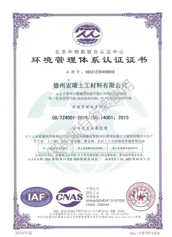 環境管理體系認證證書